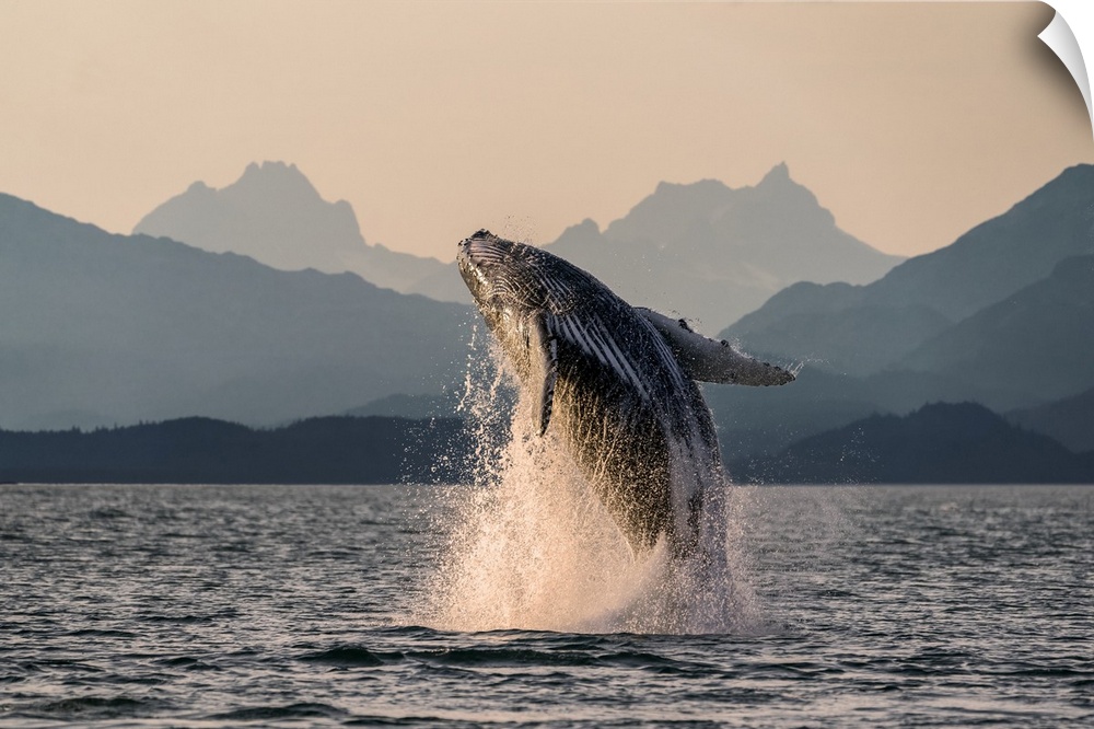<p>Humpback whale (Megaptera novaeangliae) leaping out of the water of Inside Passage in the Lynn Canal; Alaska, United States of America</p>