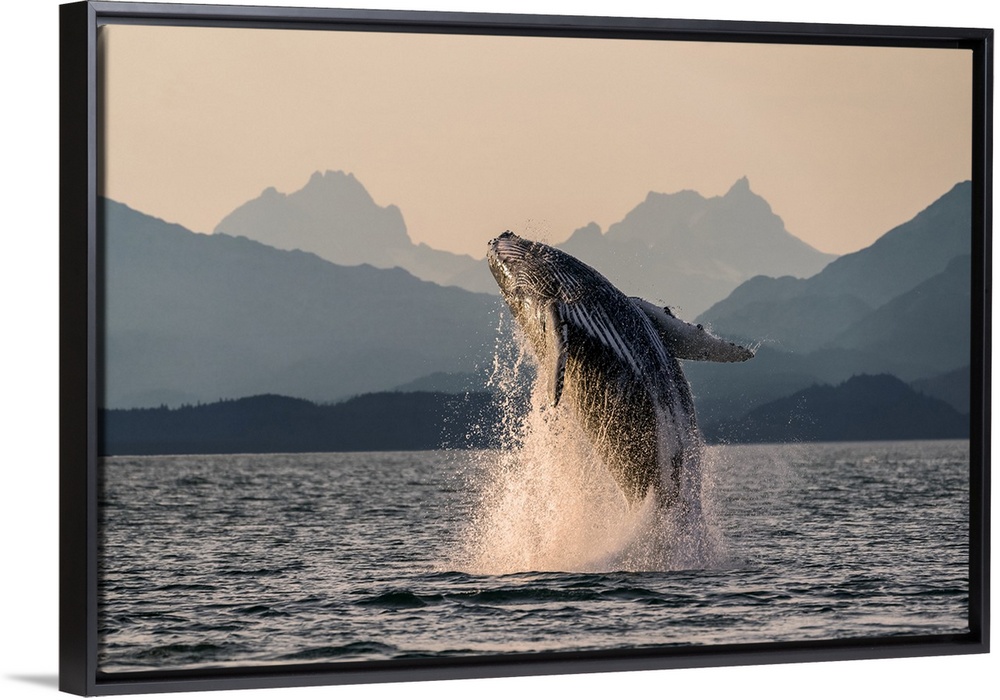 <p>Humpback whale (Megaptera novaeangliae) leaping out of the water of Inside Passage in the Lynn Canal; Alaska, United States of America</p>