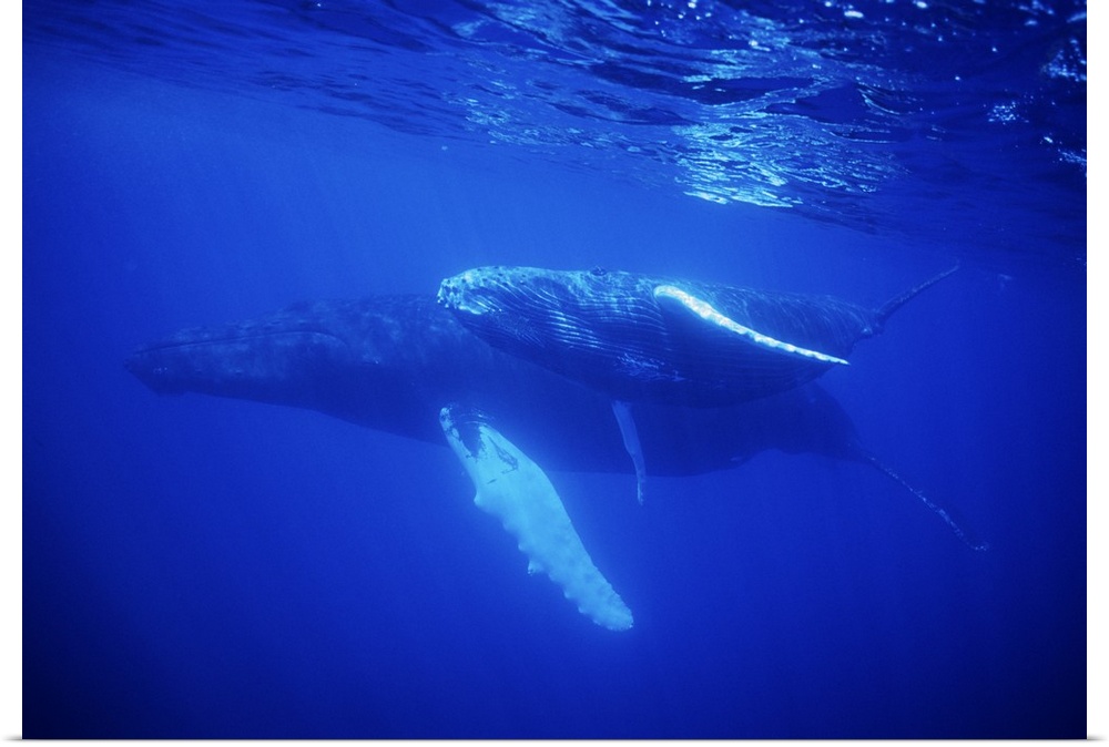 <p>Humpback Whale, (Megaptera novaeangliae), mother and baby underwater, Silver Bank, Caribbean, Dominican Republic.</p>