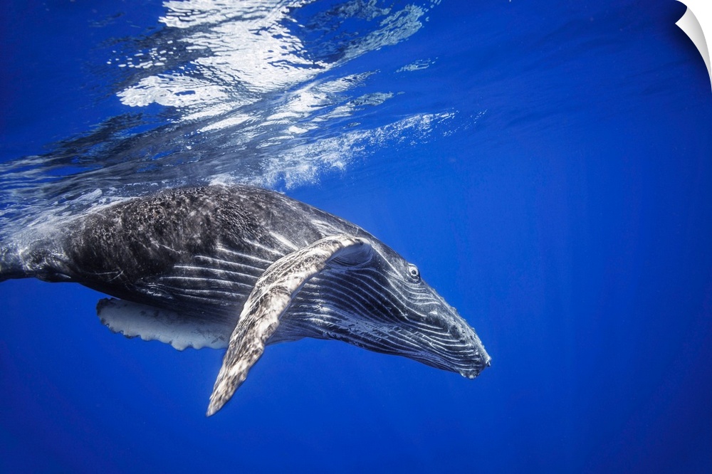 <p>Humpback whale (megaptera novaeangliae) swimming underwater just below the surface, Hawaii, united states of America.</p>