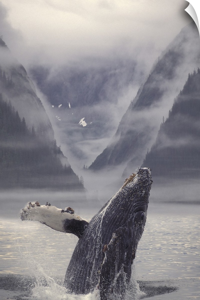 <p>Composite Humpback Whale Breaching With Mist-Covered Mountains In The Background Of The Alexander Archipelago Of Southeast Alaska. Composite</p>