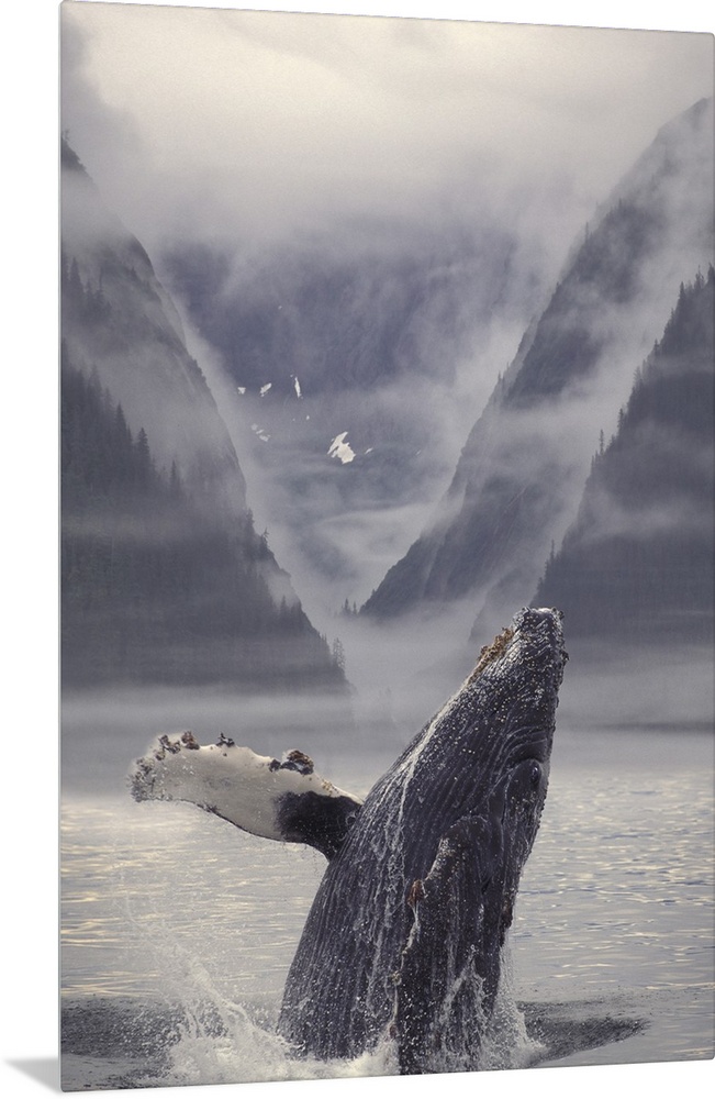 <p>Composite Humpback Whale Breaching With Mist-Covered Mountains In The Background Of The Alexander Archipelago Of Southeast Alaska. Composite</p>