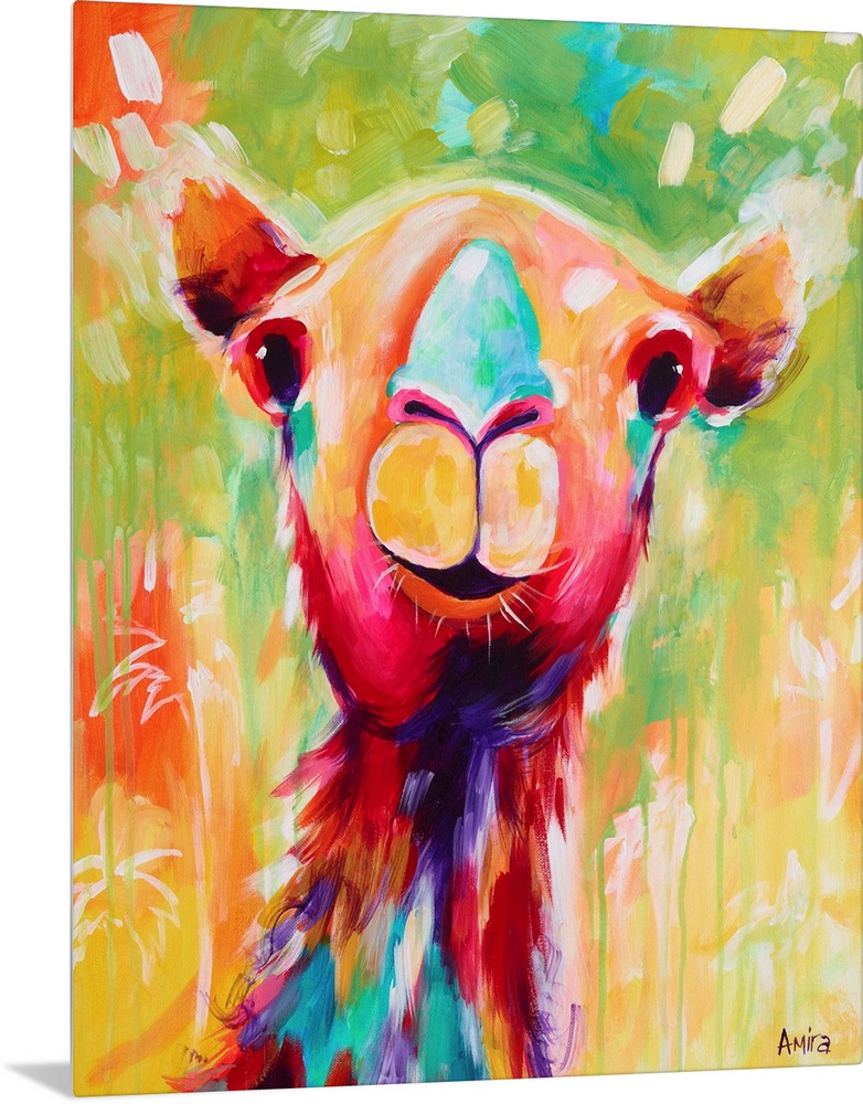 <p>Portrait of a camel in bright, tropical colors.</p>
