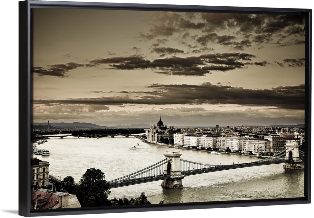 <p>Hungary, Budapest, Parliament Buildings, Chain Bridge and River Danube</p>