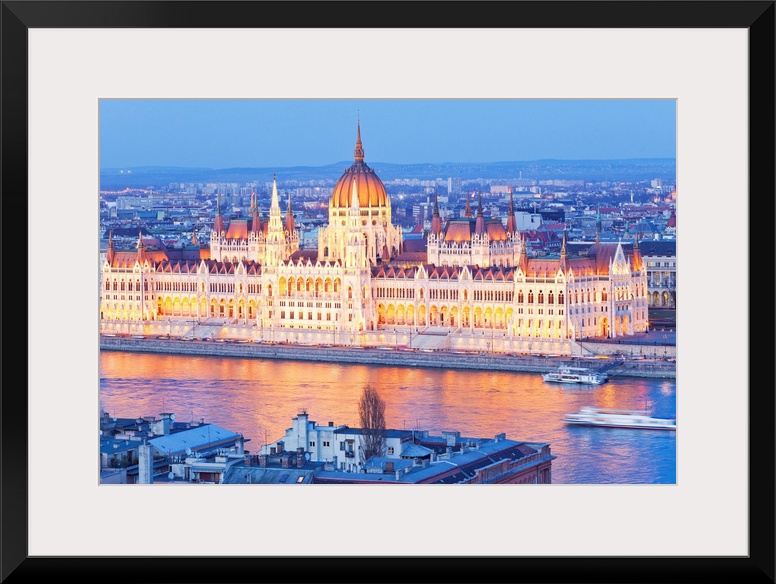 <p>Hungary, Budapest, Danube, View of the Parliament on Danube river from Fishermen's Bastion.</p>