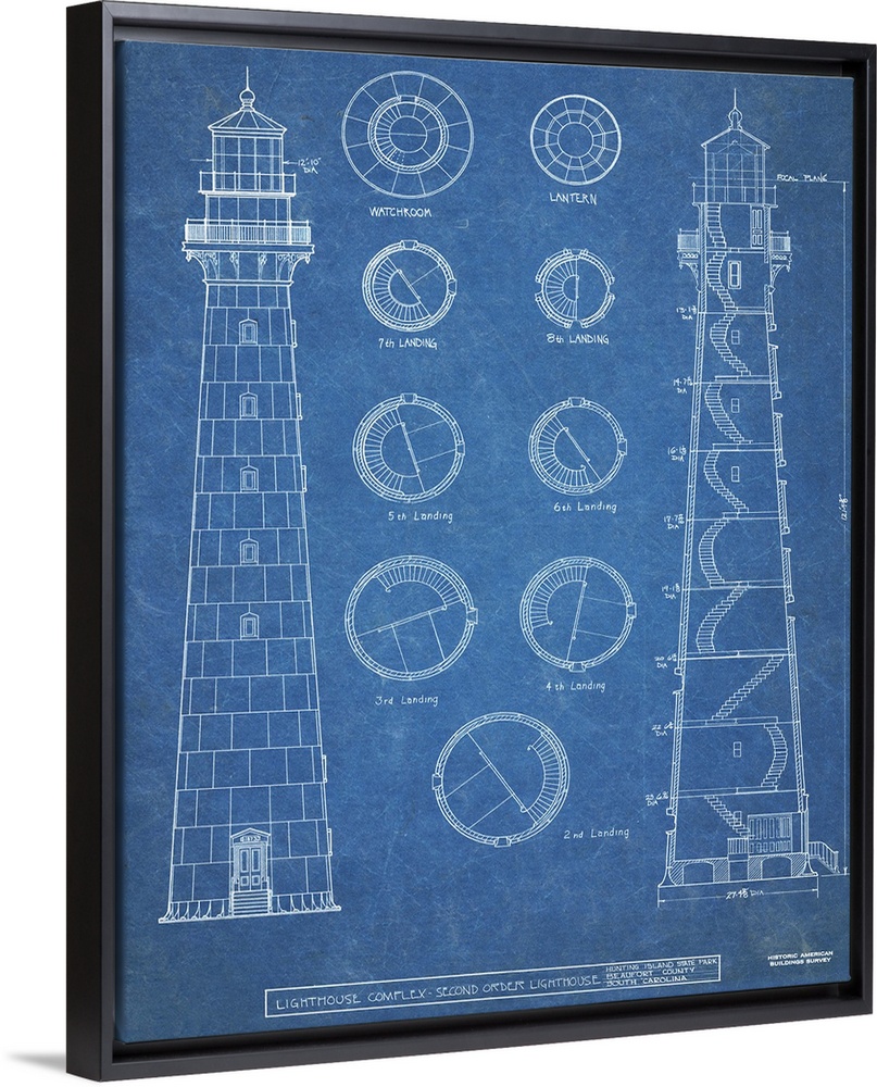 <p>Contemporary artwork in technical blueprint style of Hunting Island lighthouse.</p>