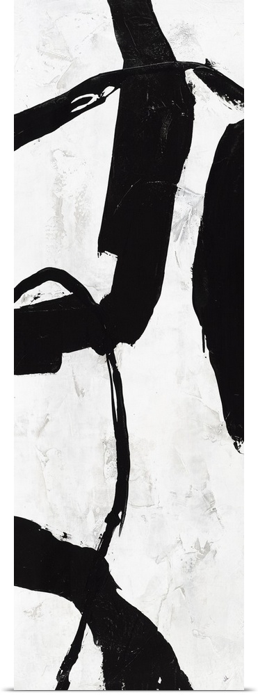 <p>Black and white abstract panel panting with bold brushstrokes creating movement up and down the canvas.</p>