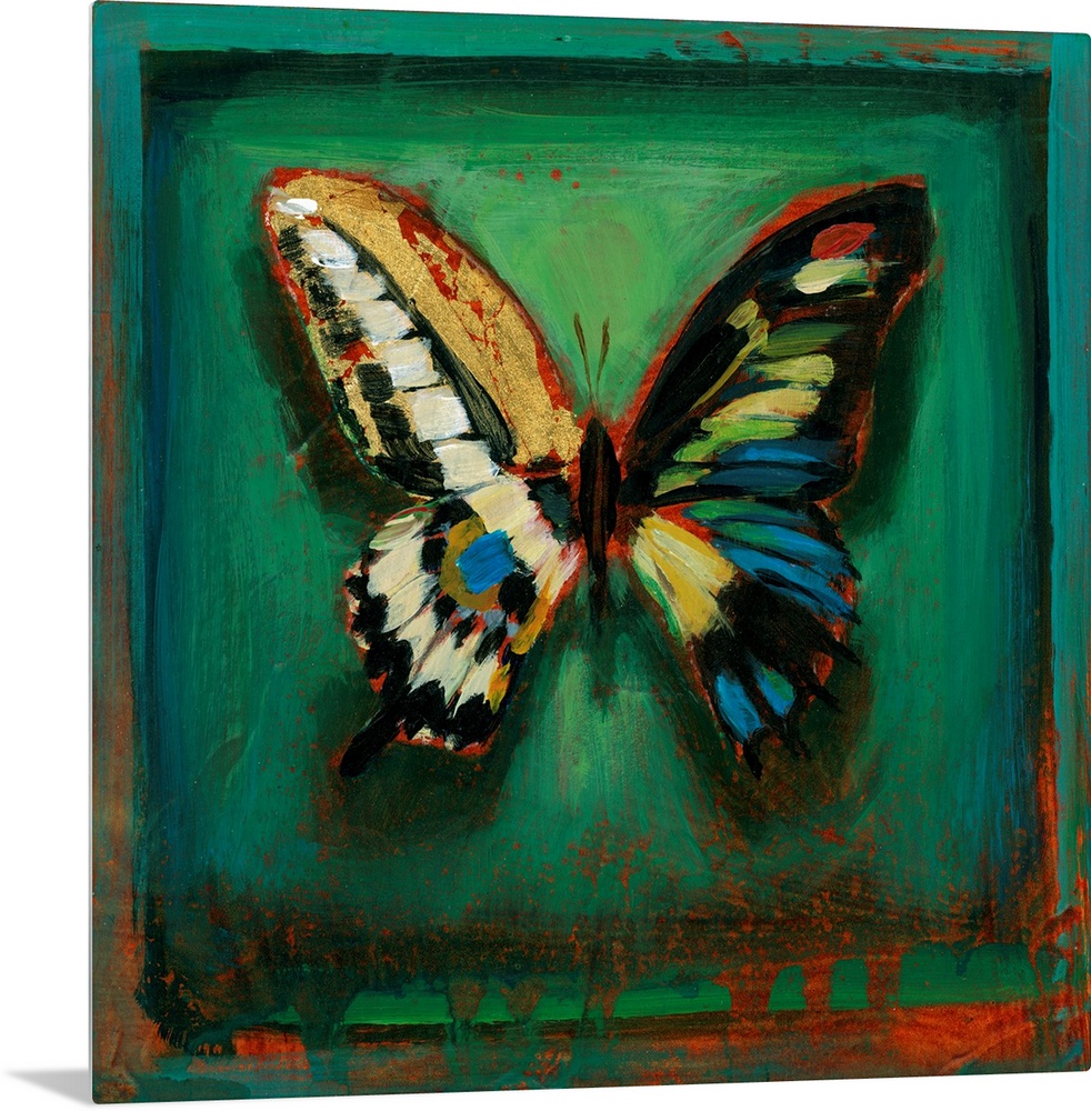 Art Transitional Contemporary Art Wildlife Green Wall Art Painting Wildlife Insect and Arachnid Butterfly