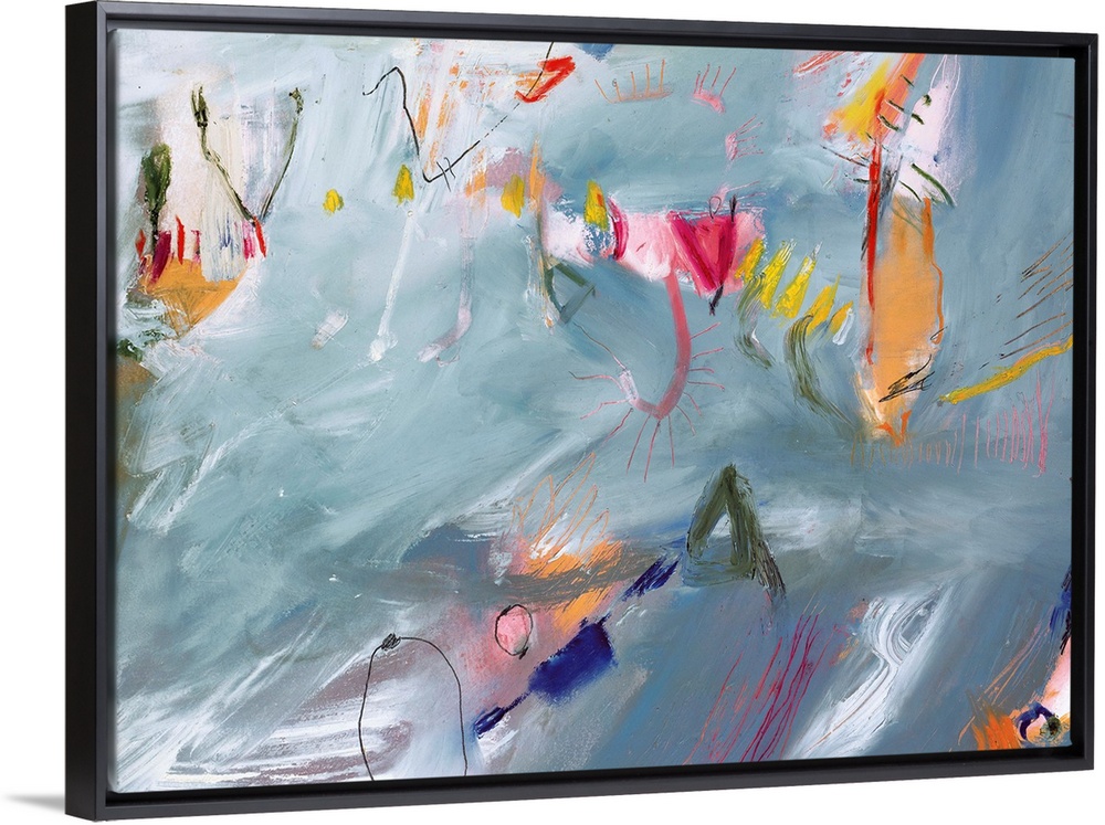 <p>An abstract painting with amoeba like shapes swimming around the streaky paint textures in the background of this decorative wall art.</p>