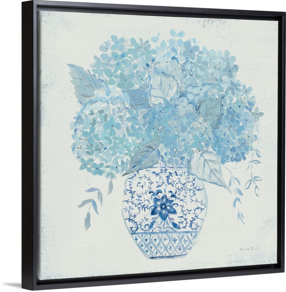 Art Blue Wall Art Chinoiserie Plants and Flowers Decorative Art Florals Hydrangea Modern Chinoiserie Painting Farida Zaman