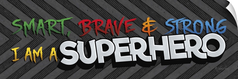 <p>Typography art reading "Smart, Brave, and Strong, I'm a Superhero" in exciting, bold lettering on a striped background.</p>
