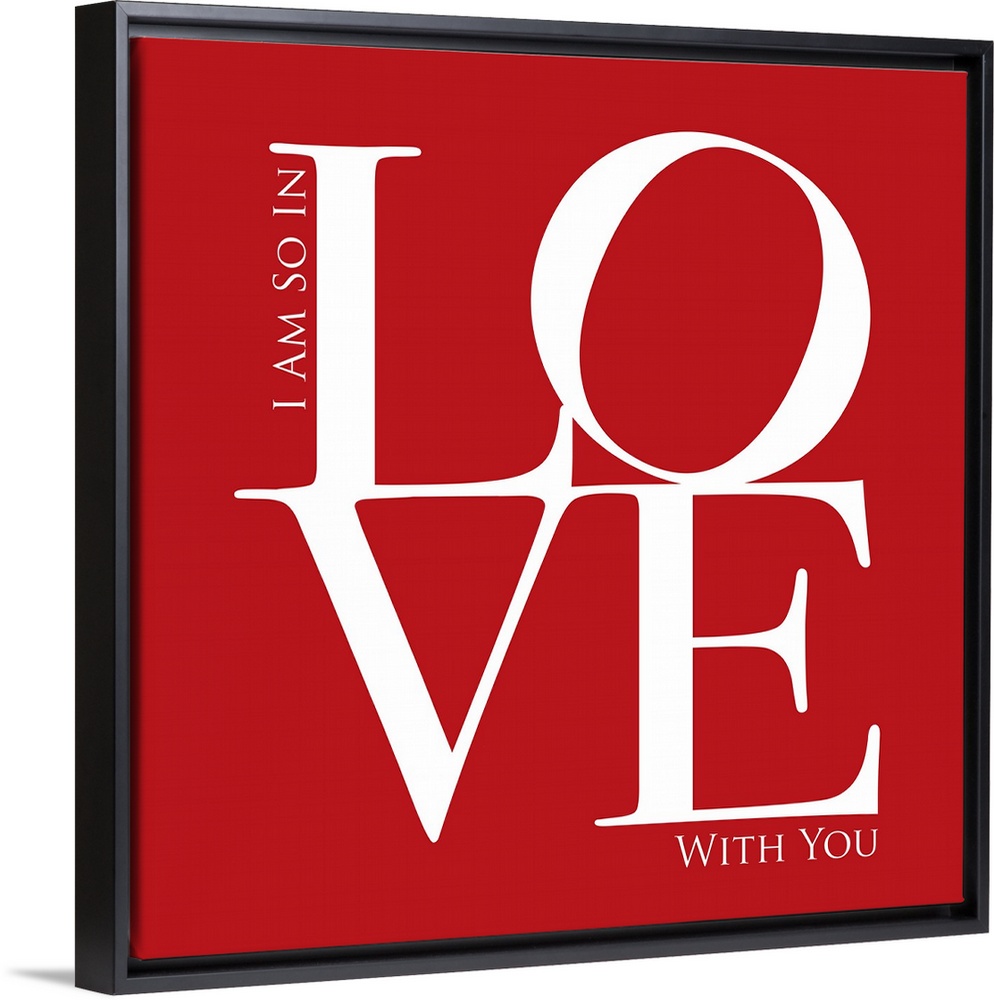 <p>Square, big wall hanging of typography text art with the words "I am so in LOVE with you" written against a red background.</p>