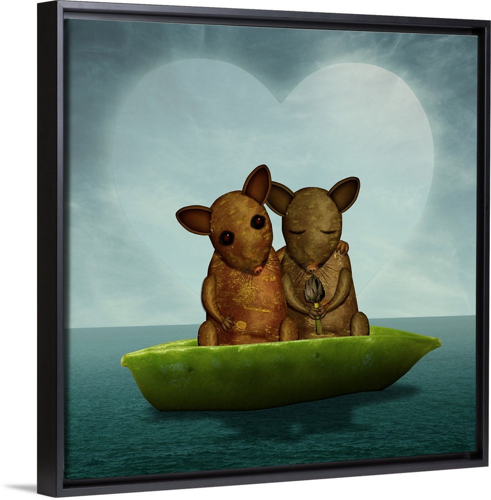 <p>Two cute mice in a boat on the ocean, in love with each other and enjoying being together.</p>