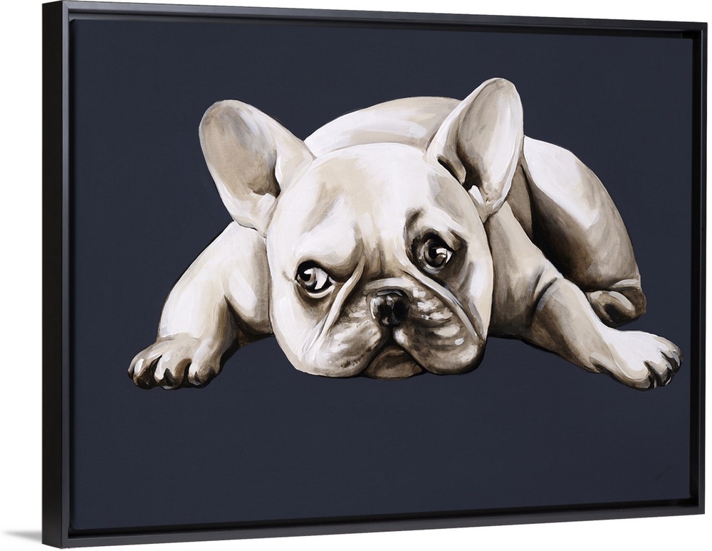 <p>A contemporary artwork of a french bulldog laying down with a look of longing on his face.</p>
