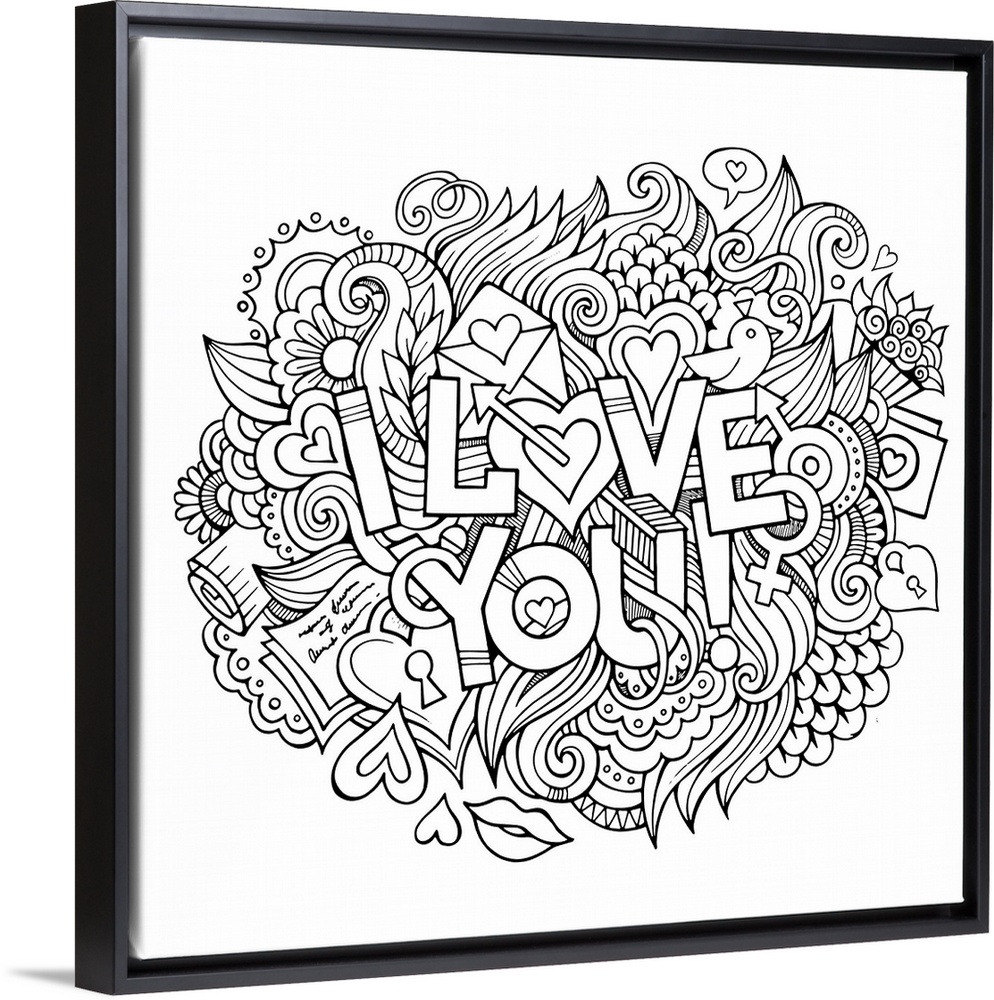 <p>Romantic design featuring hearts and swirls, surrounding the words "I Love You!"</p>