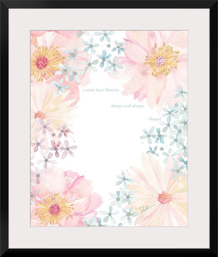 <p>Hand Painted watercolor of pastel flowers with an inspirational text</p>