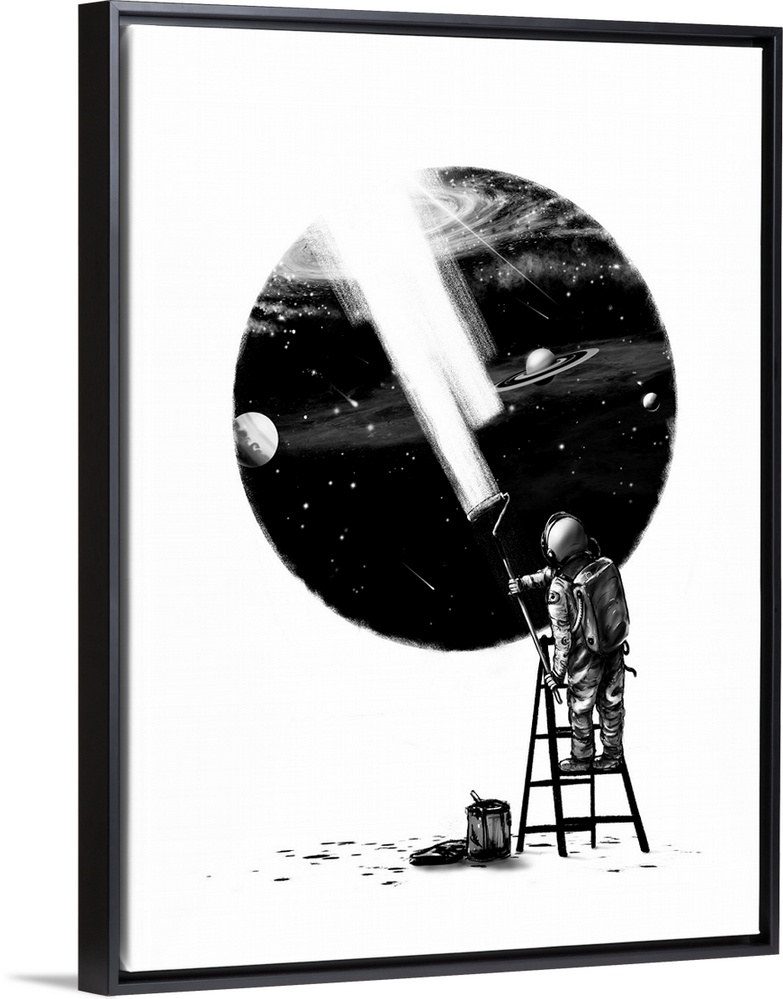 Art Children's Art Nicebleed Art Black and White Wall Art College Dorm Décor Street Style Fantasy Science Fiction Graphic Art Space Astronaut Surrealism