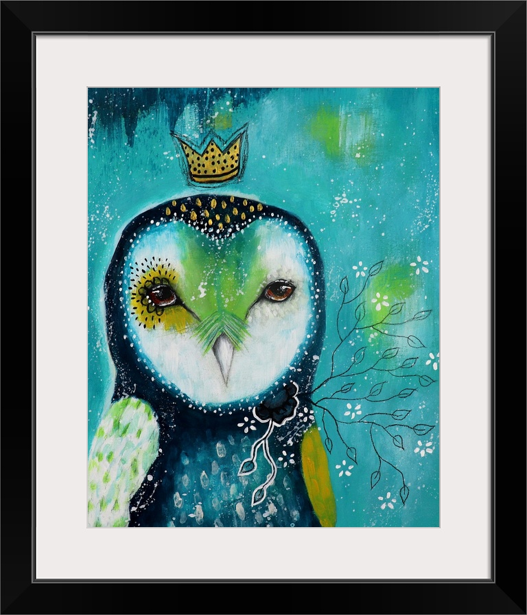Art Eclectic Children's Art Blue Wall Art Contemporary Art Wildlife The Secret Hermit Painting Wildlife Bird Owl