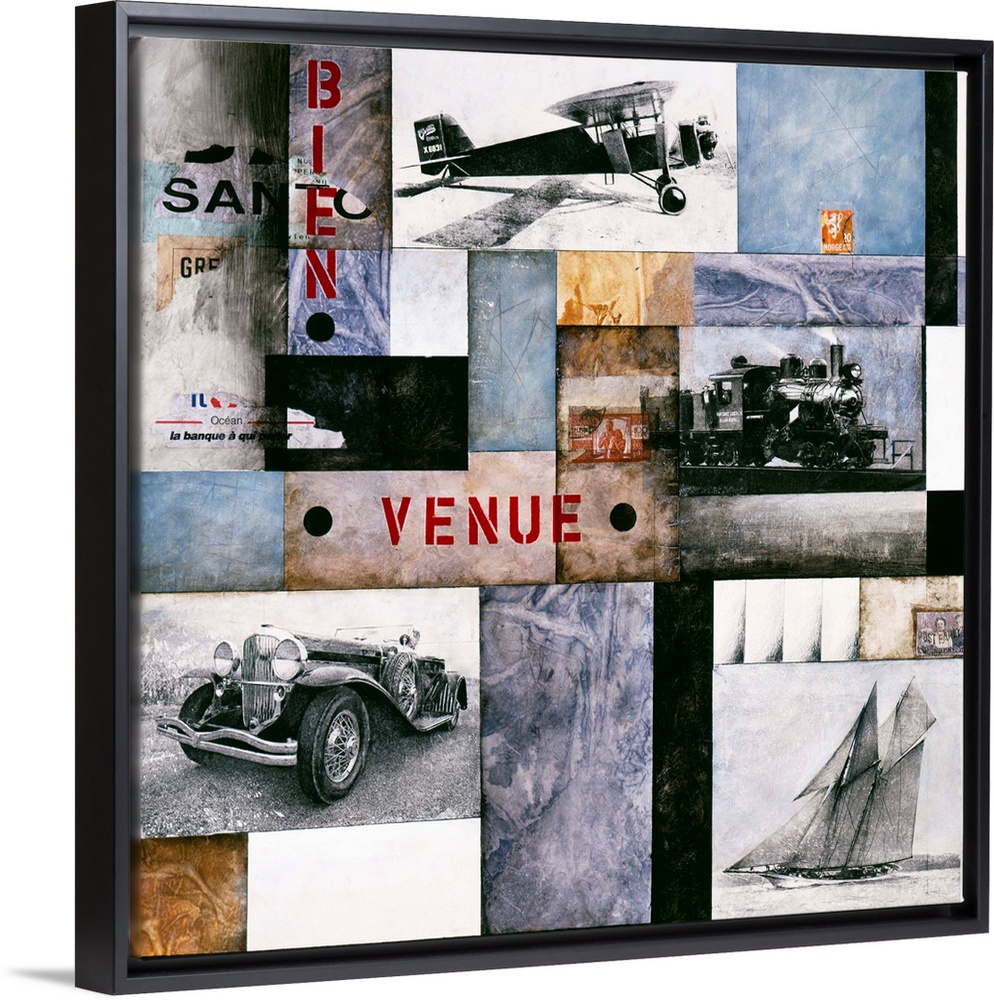 Art Contemporary Art Checo Diego Mixed Media Art Transportation Airplane Sailboat Classic and Vintage Cars Train