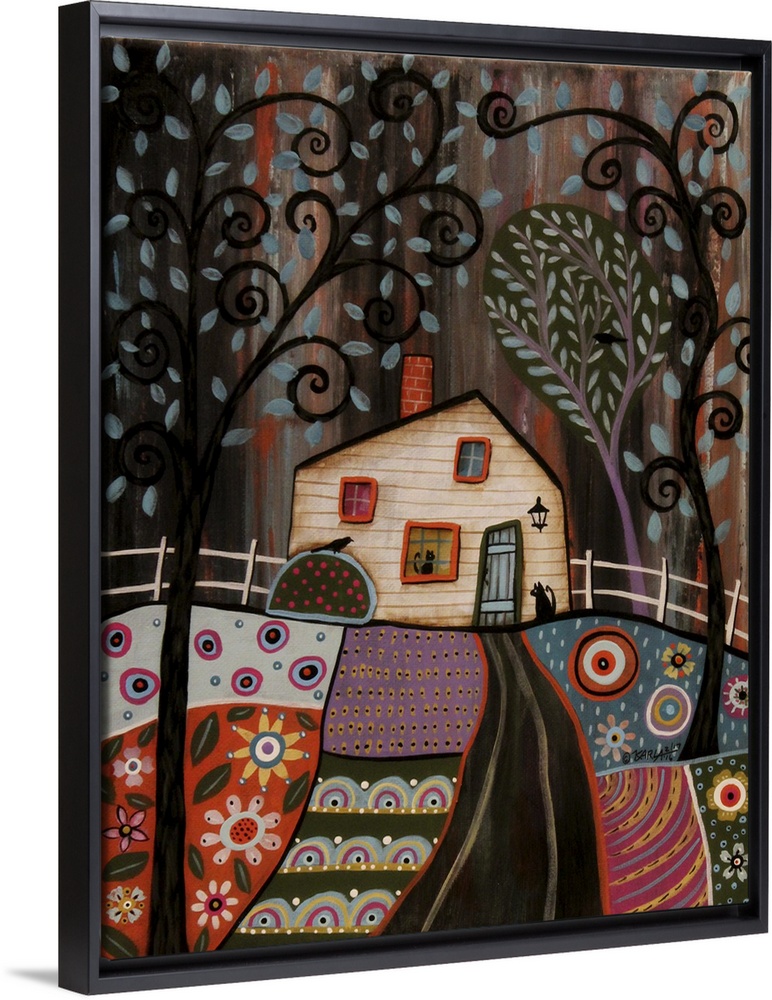 <p>Contemporary folk art painting of a house on a countryside landscape.</p>