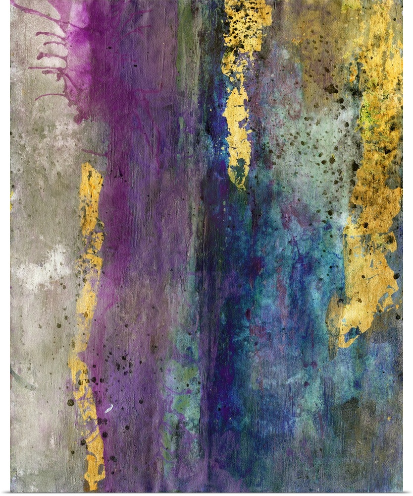 <p>Contemporary abstract painting with gold shades contrasted with darker tones.</p>