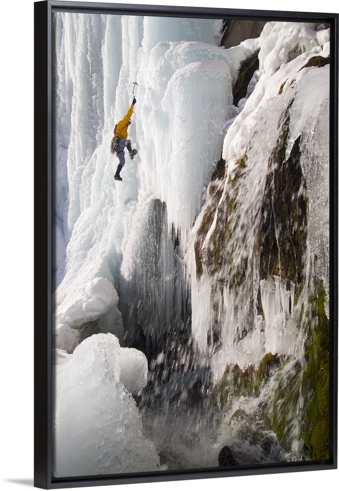 <p>Daryn Ice Climbing Stewart Falls, Wasatch Mountains, near Provo and Sundance, Utah, USA.</p>