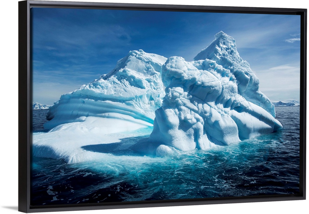 <p>Antarctica, Iceberg floating near mountainous coast by Gerlache Strait along Antarctic Peninsula</p>