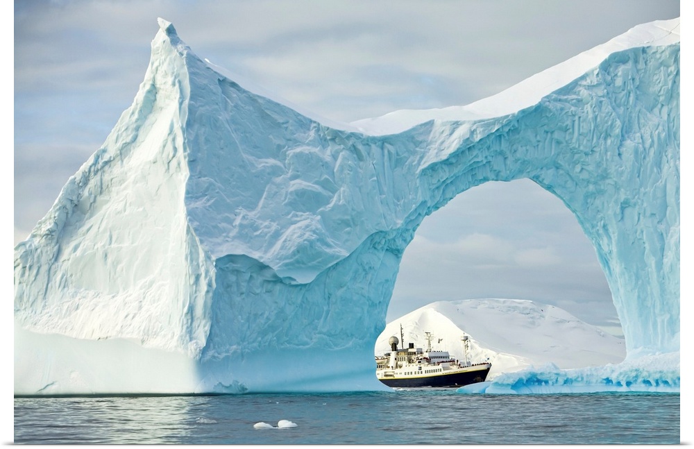 <p>Iceberg with arch frames an expedition ship in the Yalour Islands of Antarctica, Yalour Islands, Antarctica</p>