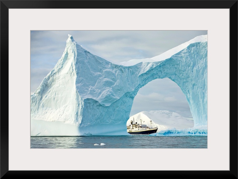 <p>Iceberg with arch frames an expedition ship in the Yalour Islands of Antarctica, Yalour Islands, Antarctica</p>