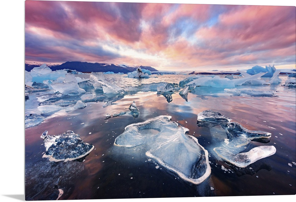 <p>Incredible landscape with icebergs in Jokulsarlon glacial lagoon. Vatnajokull National Park, southeast Iceland, Europe.</p>
