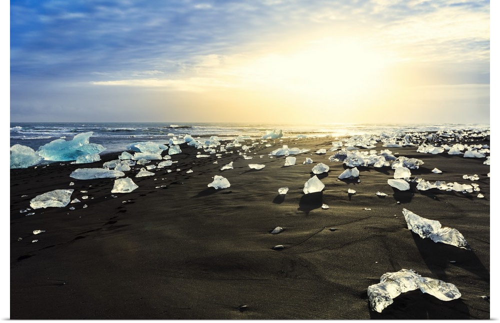 <p>Icebergs on a black sand volcanic beach next to the Jokulsarlon glacial lake in Vatnajokull National Park, southeast Iceland, Polar Regions</p>