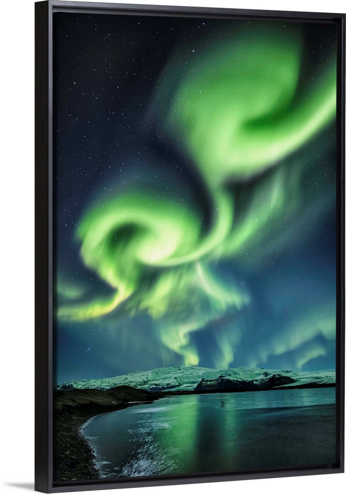 <p>Aurora Borealis above Jokulsarlon Lagoon in Iceland.</p>