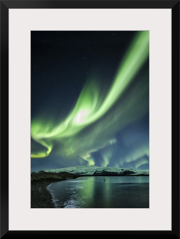 <p>Aurora Borealis above Jokulsarlon Lagoon in Iceland.</p>