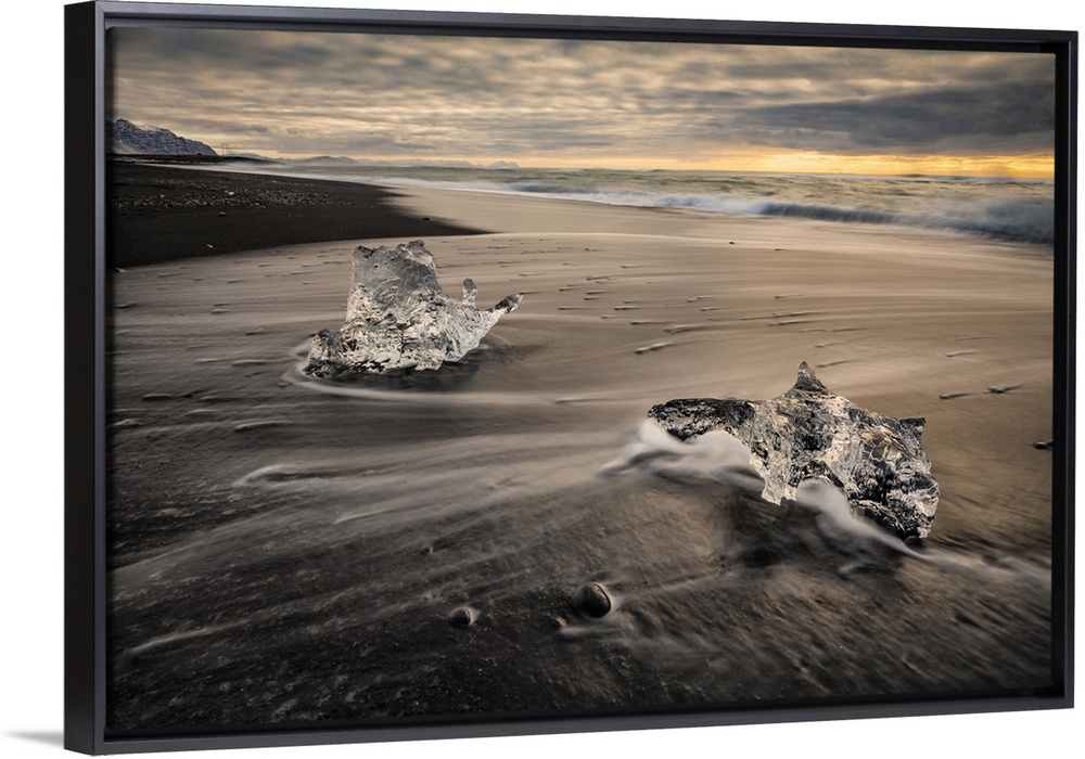 <p>Small icebergs on the beach by Jokulsarlon lagoon, Iceland.</p>