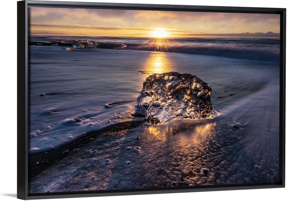 <p>Small icebergs on the beach by Jokulsarlon lagoon, Iceland.</p>