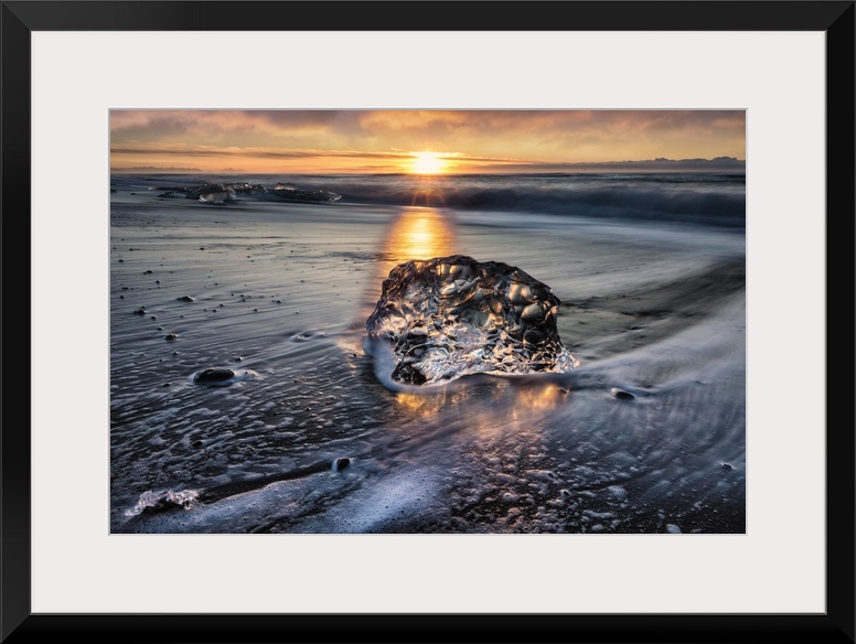 <p>Iceberg on the beach by Jokulsarlon lagoon, Iceland.</p>