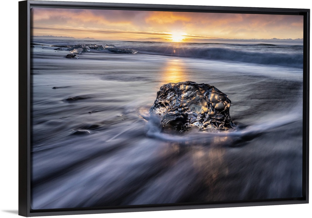 <p>Iceberg on the beach by Jokulsarlon lagoon, Iceland.</p>