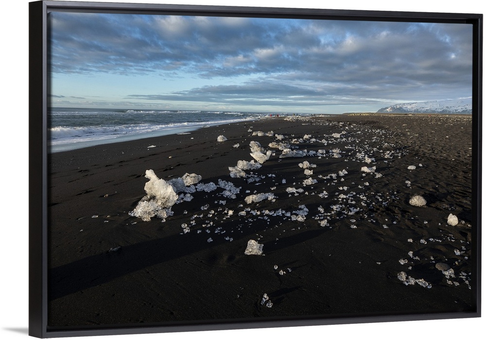 <p>Small icebergs on the beach by Jokulsarlon lagoon, Iceland.</p>