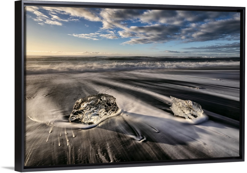 <p>Small icebergs on the beach by Jokulsarlon lagoon, Iceland.</p>