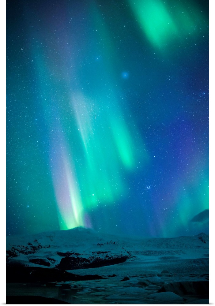<p>Iceland, Fjallsarlon. The Northern Lights appearing in the sky at Fjallsarlon.</p>