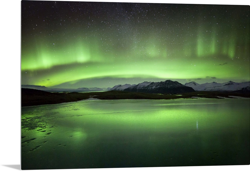 <p>Iceland, South Iceland, Jokulsarlon, Jokulsarlon, Northern lights over Jokulsarlon glacier lagoon.</p>
