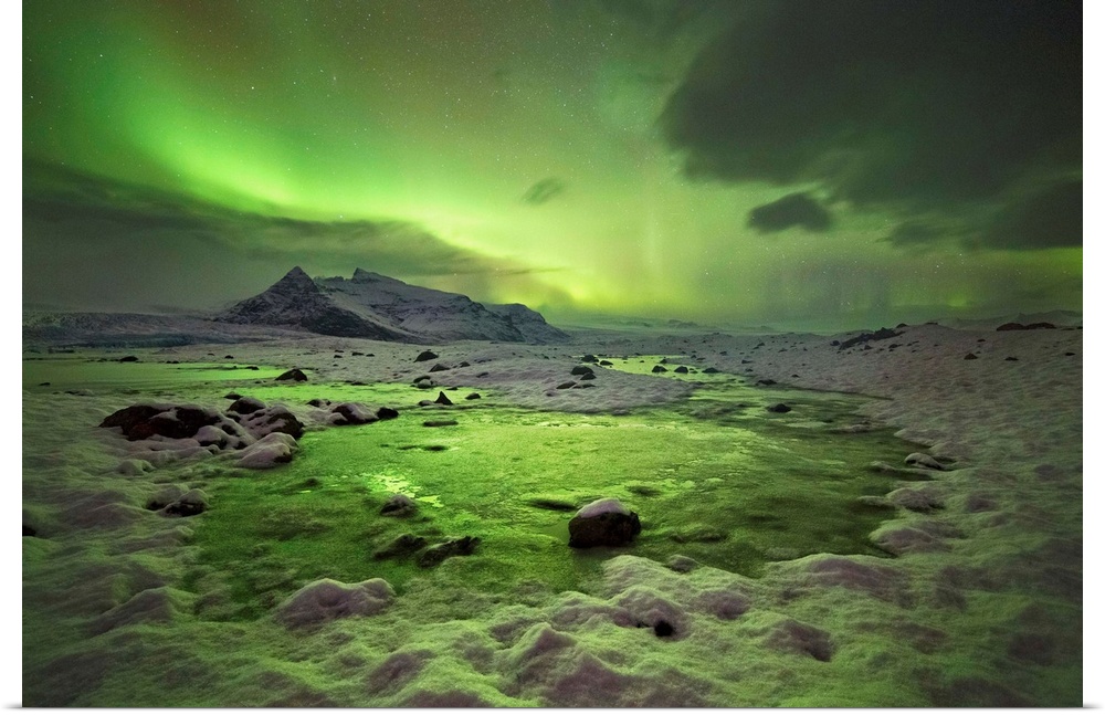 <p>Iceland, South Iceland, Jokulsarlon, Aurora Borealis, Jokulsarlon Lagoon.</p>