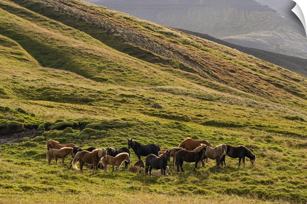 <p>Icelandic horses in the rugged landscape, Iceland</p>