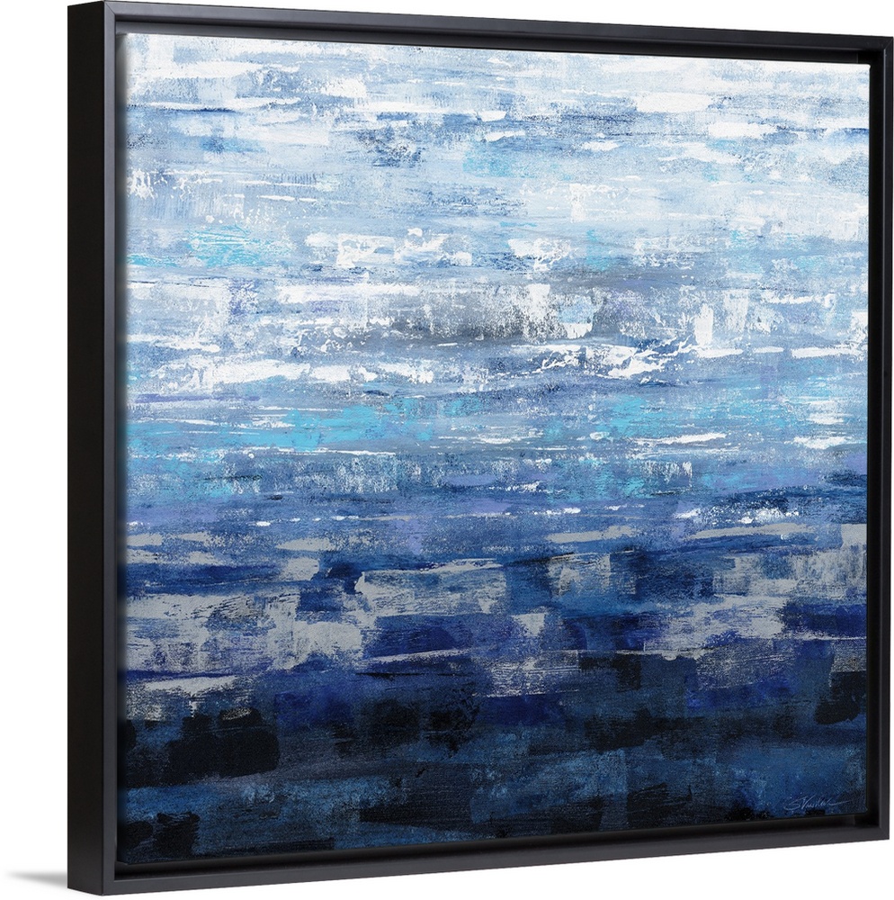 <p>Square abstract painting of textured brush strokes in a gradient of shades of blue.</p>