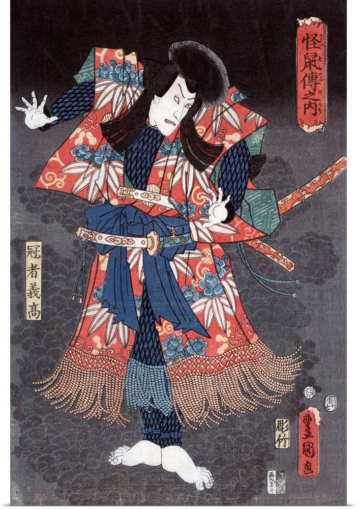 <p>Utagawa, Toyokuni, 1786-1865. Takizawa, Bakin, 1767-1848. Hachidaime ichikawa danjuro kaja yoshitaka. Date Created/Published: 1854. Color woodblock print; 36.8 x 24.8 cm. Full-length portrait of the actor Ichikawa Danj-ro VIII in a scene from the play Raigo ajari kaisoden.</p>
