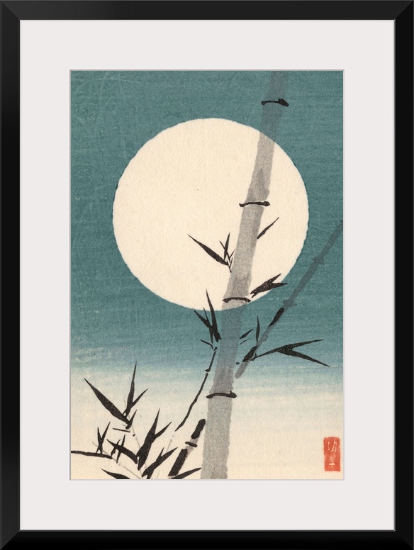 <p>Eastern art of a bamboo culm against the moon.</p>