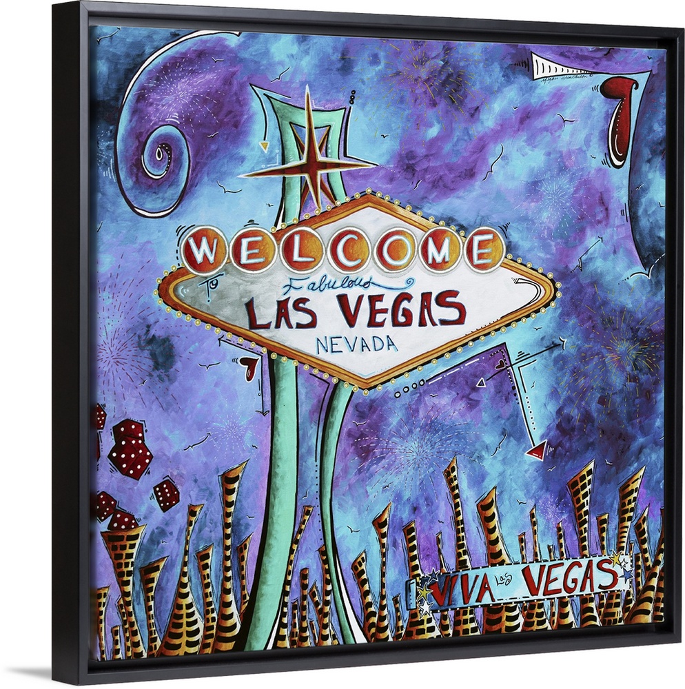 <p>Contemporary painting of the Vegas sign against a purple and blue colored sky.</p>