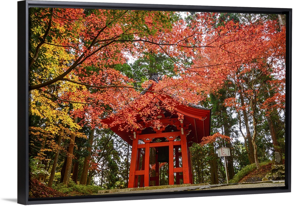 <p>Iconic red Shoro (bell tower) framed by vivid autumn leaves on Mount Hiei, near the historic Enryaku-ji Temple, Ohara, Honshu, Japan</p>
