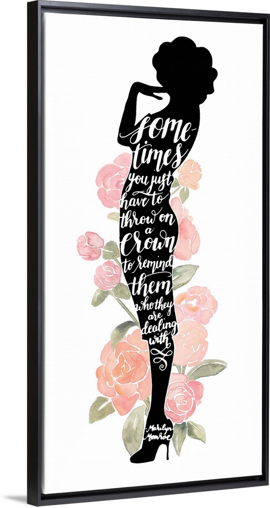<p>Inspirational handlettered quote in a silhouette of Marilyn Monroe, with watercolor roses.</p>
