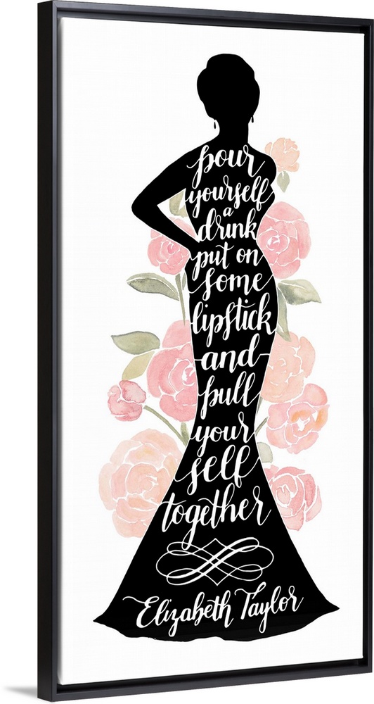 <p>Inspirational handlettered quote in a silhouette of Elizabeth Taylor, with watercolor roses.</p>